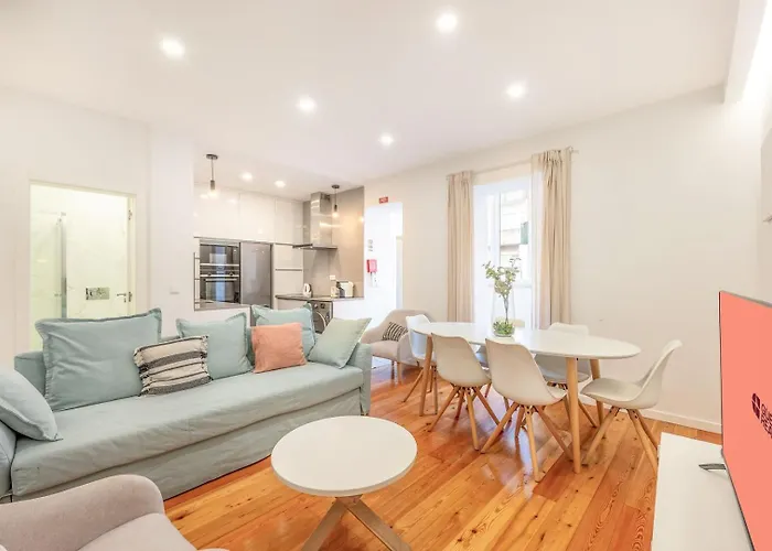Arco das Portas de Sao Bentoの近くに位置するGuestready - Modern Atmosphere In Lisbonアパ-トメントはテラス,宿泊施設中ののWi-Fi付きの客室を提供しています. セッテ・リオス地区に位置するアパ-トメントはカルモ修道院から3.5キロメ-トルです.